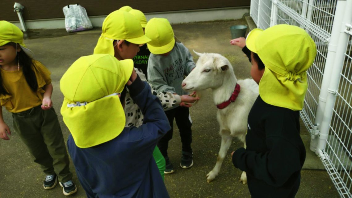 年少さんから年長さんまで、保育士さんも含めて楽しんでいました。この事業を通して、子どもたち一人ひとりが、優しさや思いやりを持って動物と接することの大切さを肌で感じました。また、山羊さんの呼吸や鼓動を感じることで、すべての生き物が持っている「命」の尊さや温かさを、座学ではなく実体験として学んでもらえたことと思います。この貴重な経験が、子どもたちの健やかな心の成長と、豊かな情操を育む一助となることを願っています。